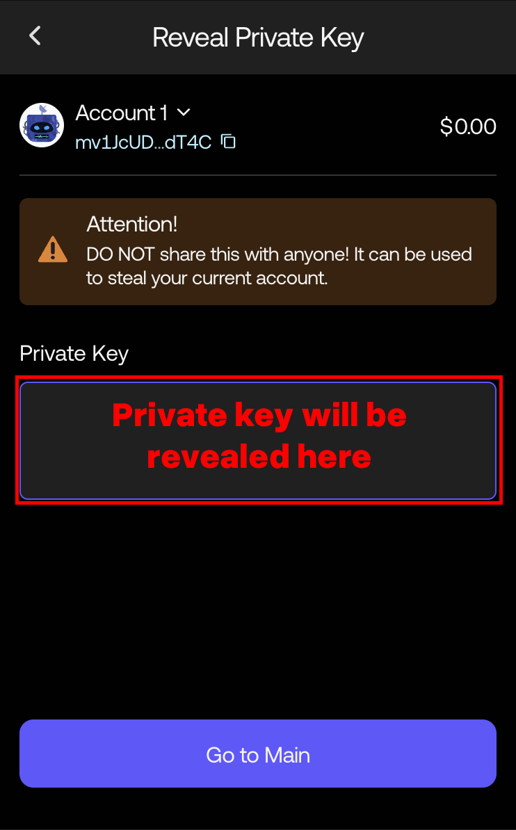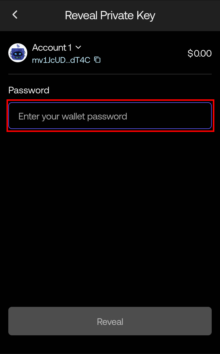 - Then, go to Reveal Private Key