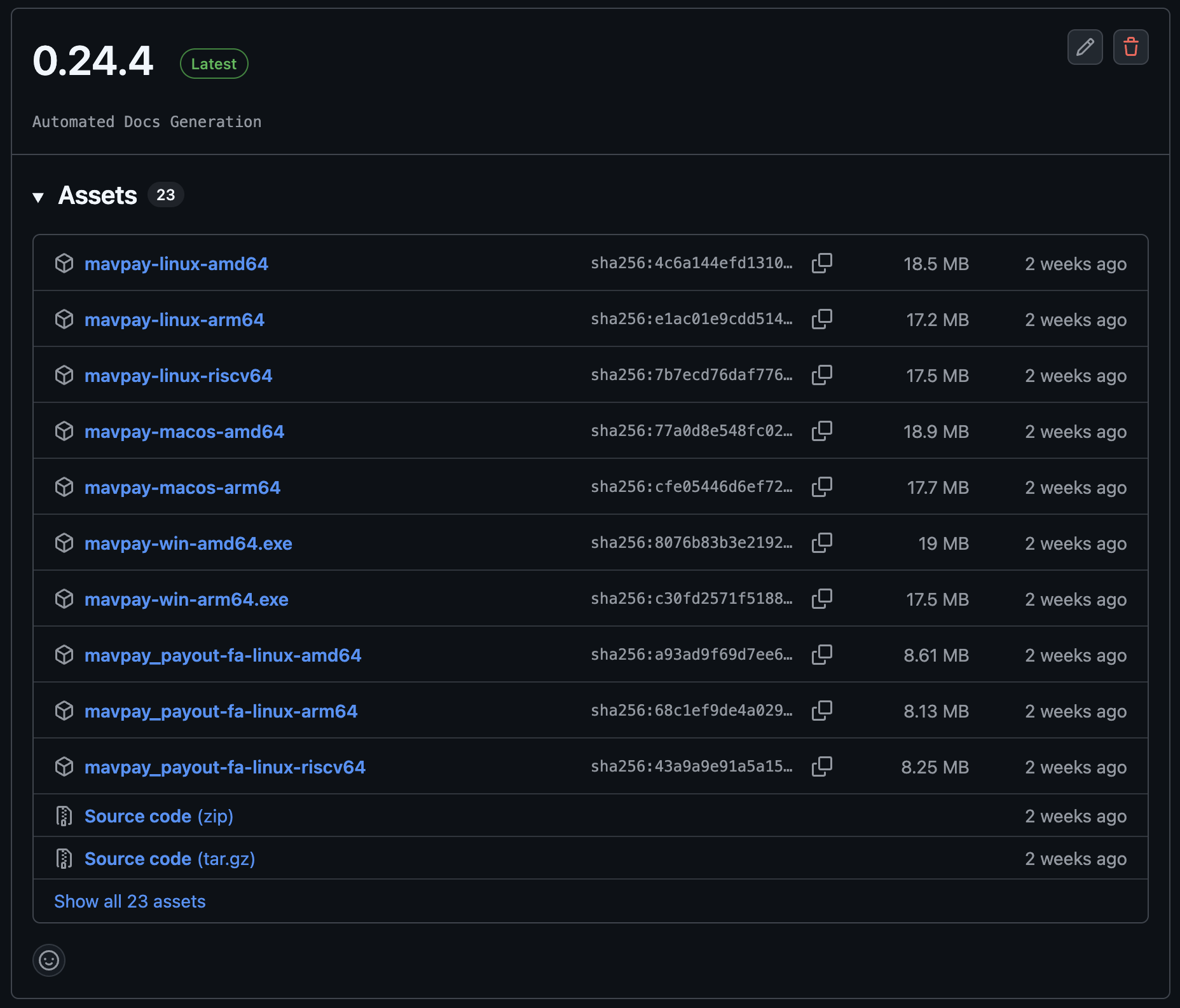 Download the software from Github using the link: https://github.com/mavryk-network/mavpay/releases. In this repository, select the correct operating system and system architecture (arm64 or amd64). For this example we will be using arm64