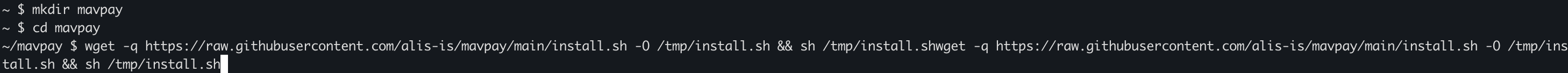 the terminal, then use command wget -q https://raw.githubusercontent.com/mavryk-network/mavpay/main/install.sh -O /tmp/install.sh && sh /tmp/install.sh