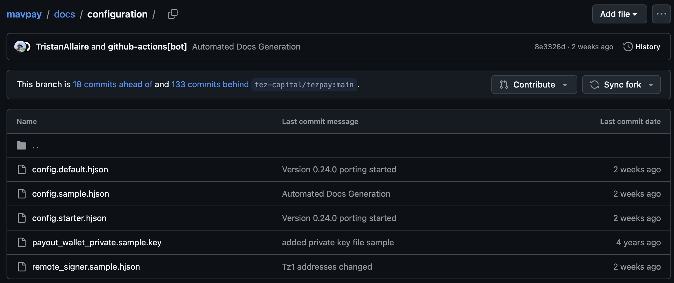 Next, you will download the sample configuration file & payout_wallet_private.sample.key file from : https://github.com/mavryk-network/mavpay/blob/main/docs/configuration/ - or you can open file in GitHub and copy text to a text editor.